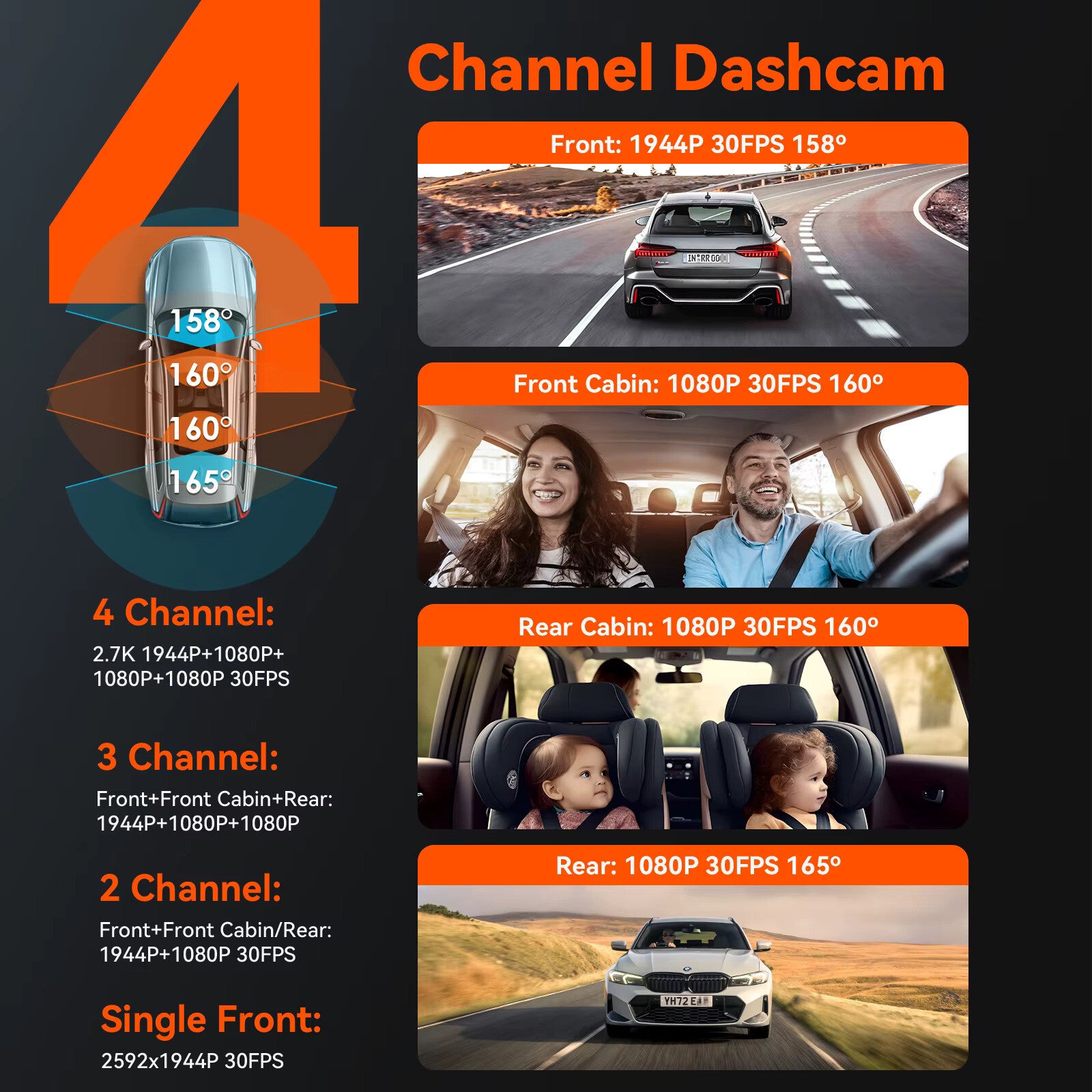 Vantrue N5 DashCam 4-Kanal WiFi 360 ° Alle Seiten STARVIS 2 IR Nachtsicht Sprachsteuerung GPS Auto Dash Cam Unterstützung 512 GB max